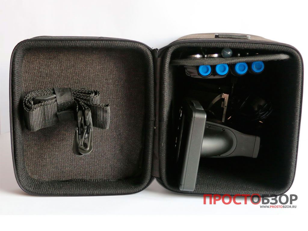 Сам микроскоп и инструменты для работы с прибором сохраняются в практичном жестком гофре, который закрывается на молнию ( верхняя крышка). Для переноски используется ручка или наплечный ремешок.