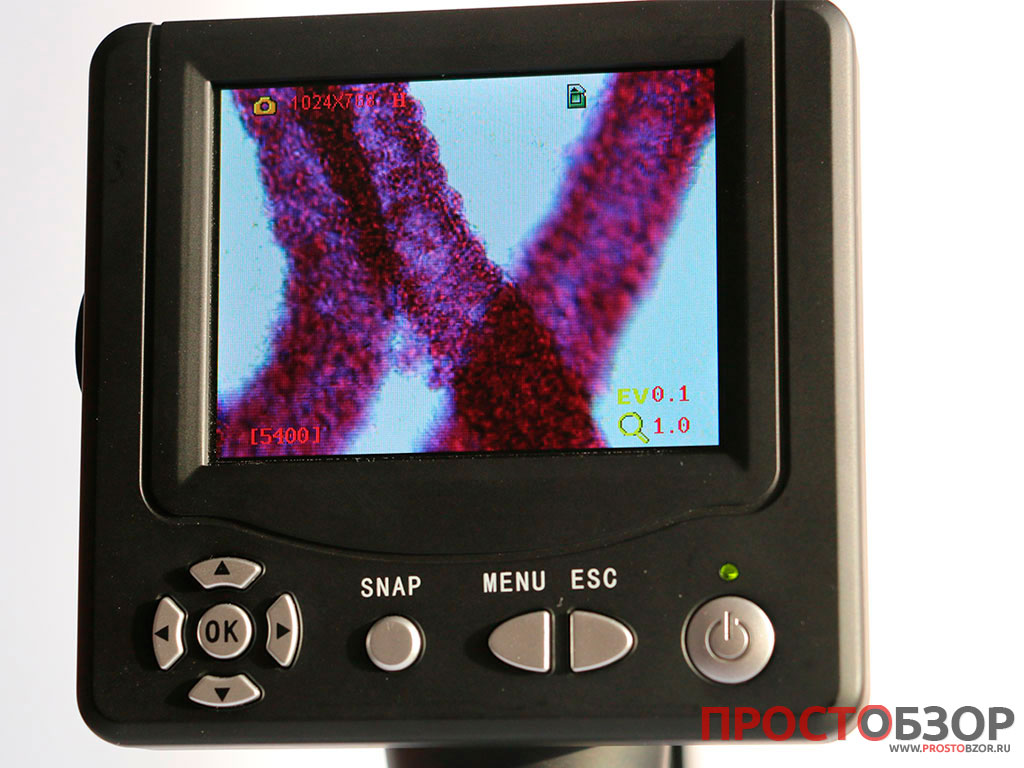 А теперь переходим к самому интересному — ЖК дисплею микроскопа. Это своеобразный многофункциональный экран который позволяет управлять процессом показа, записи фота и видео.