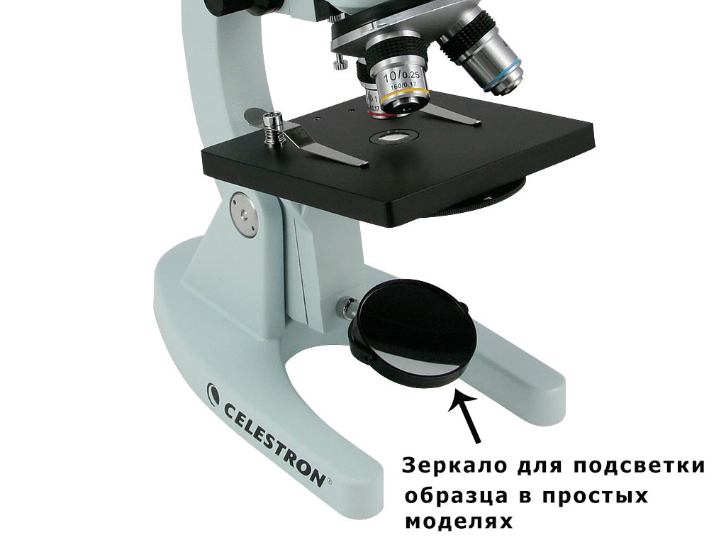 Нижняя подсветка (под столиком) — как раз помогает подсвечивать образец. В старых моделях вам нужно было найти источник света, чтобы подсветить исследуемый объект.
