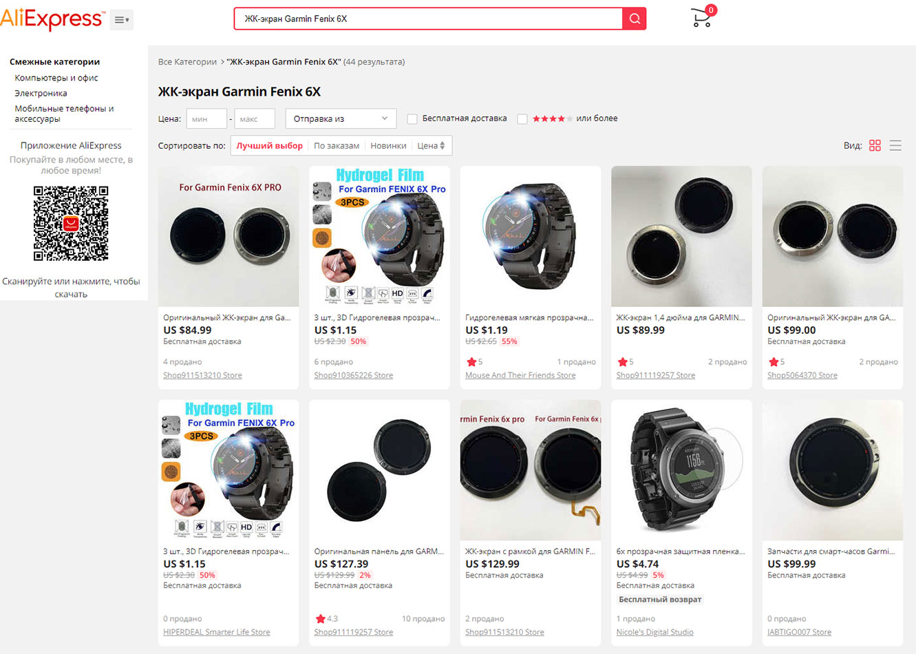 А где мне купить новый безель со стеклом? Сам Garmin официально не продает запчасти для своих моделей часов. В этом случае, вам лучше поискать на онлайн аукционах, где продают части часов после ремонта или брака. Например АлиЭкспрес, eBay.
