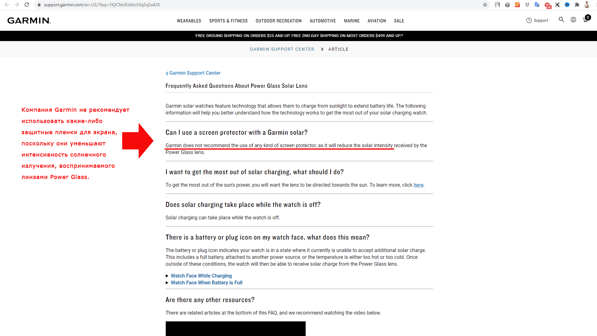Вопрос 2: Не будет ли мешать наклеенная пленка или даже защитное стекло солнечной зарядке для часов Solar в линейке Garmin?