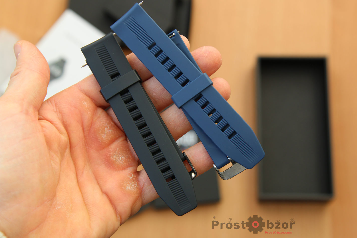 Приятно удивила комплектация — в поставке идёт 2 силиконовых ремешка в двух расцветках: чёрный и темо-синий.