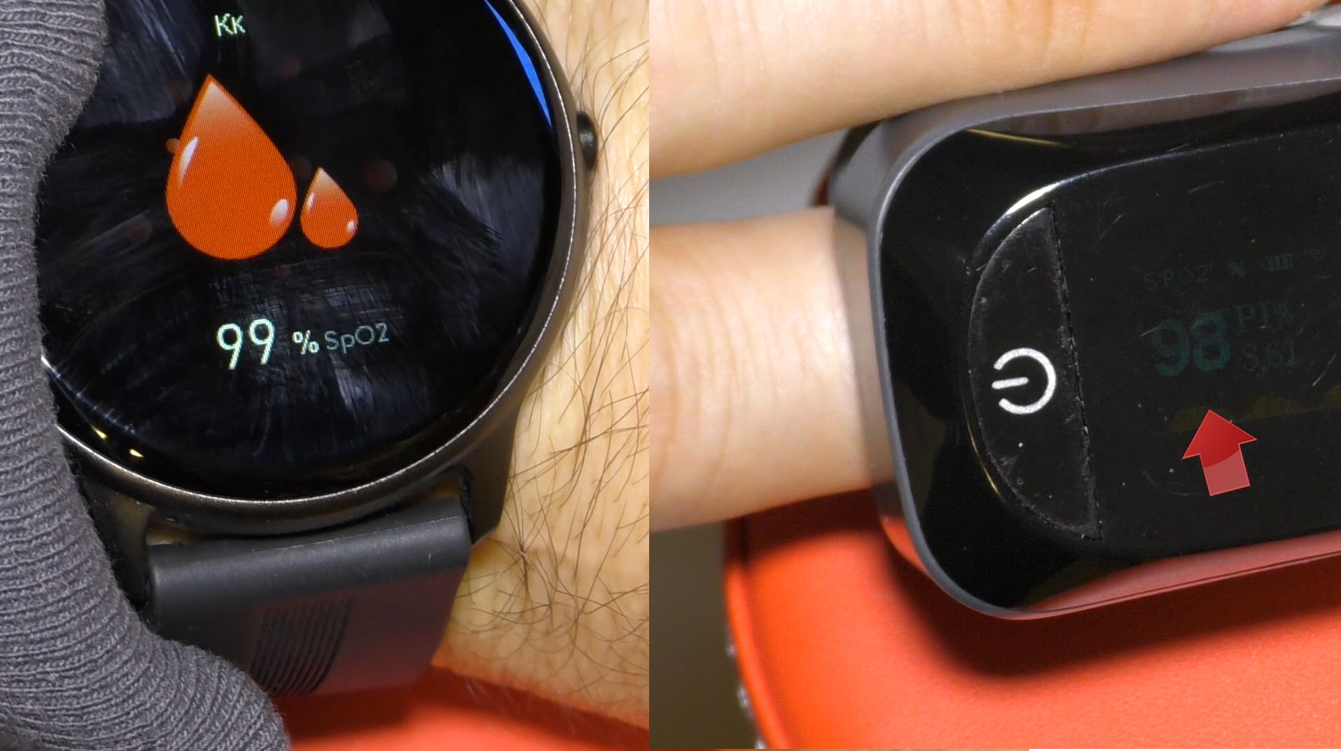Проверил показатели бытового Пульсоксиметра , который считывает насыщение кислорода в крови пальца с встроенным Пульсоксиметром.
