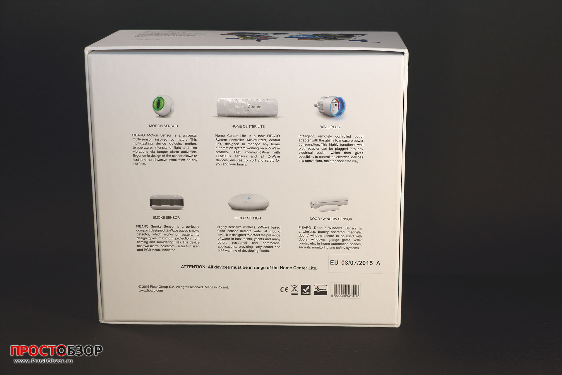 | Коробка комплекта Fibaro Smart Home — Starter Kit вид сзади |