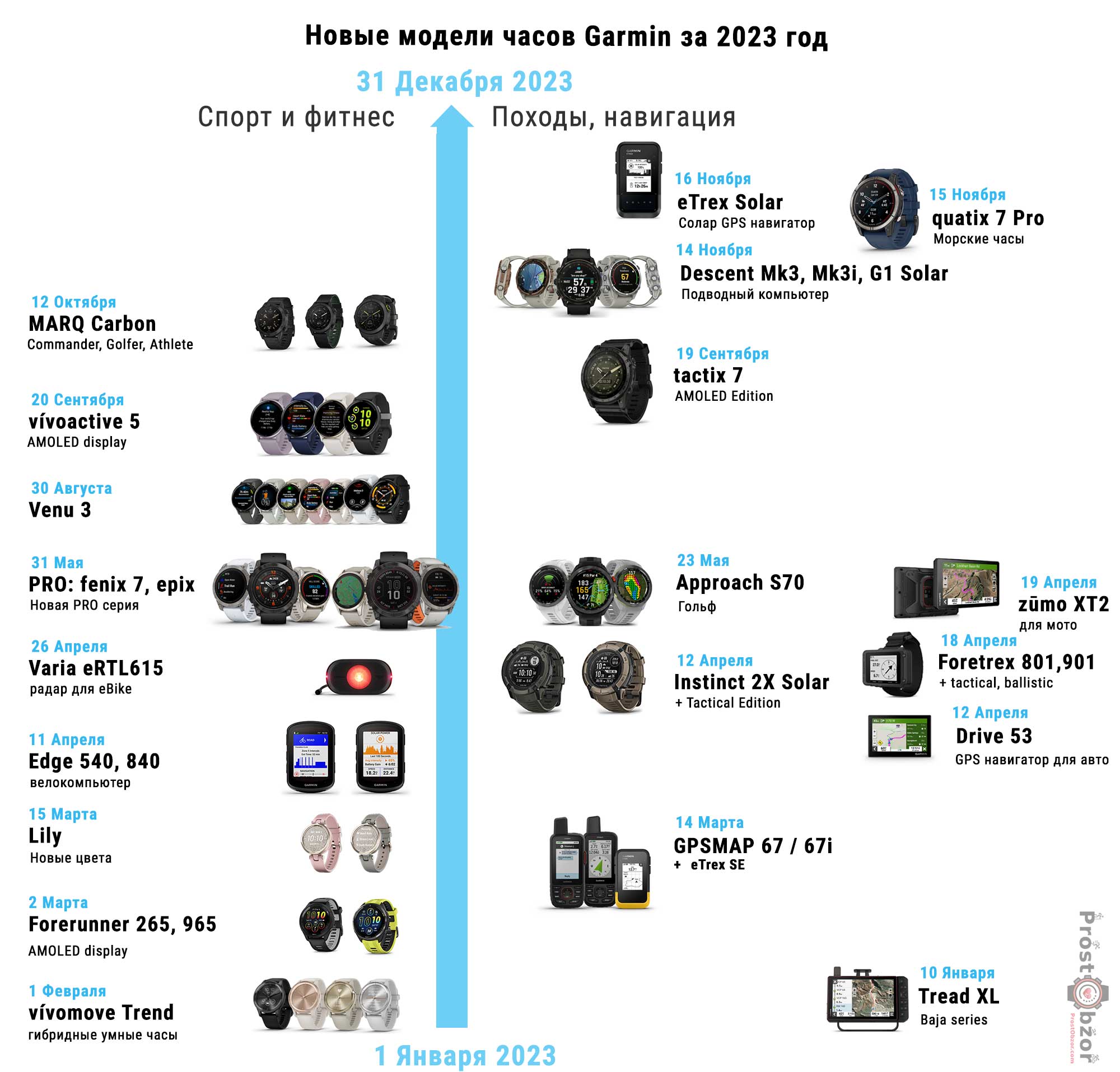 Предлагаю вашему вниманию хронологию выпуска всех моделей Garmin за 2023 год.