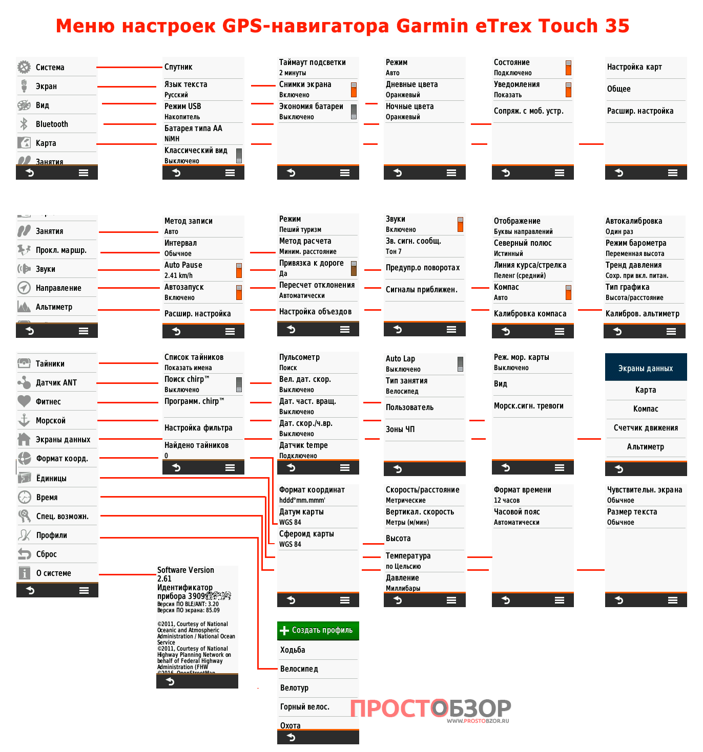 Функционал, интерфейс, программы GPS навигатора Garmin eTrex Toch 35