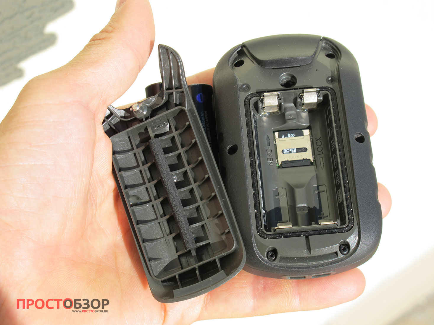 В батарейном отсеке вы можете установить 2 пальчиковые батарейки типа АА. Под ними находится слот для MicroSD карт.