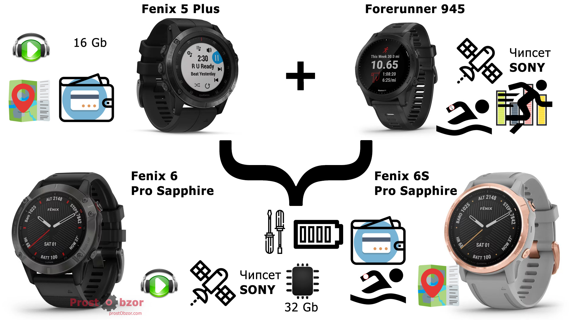 Кроме того в обзор вошли ещё и Garmin Fenix 5X Plus и Forerrunner 945.