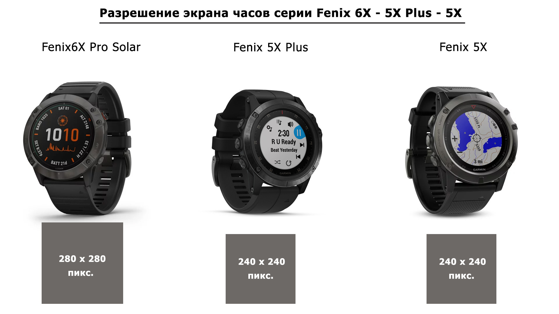 Сравнительная таблица моделей: Fenix 6X — Fenix 5X Plus — Fenix 5X