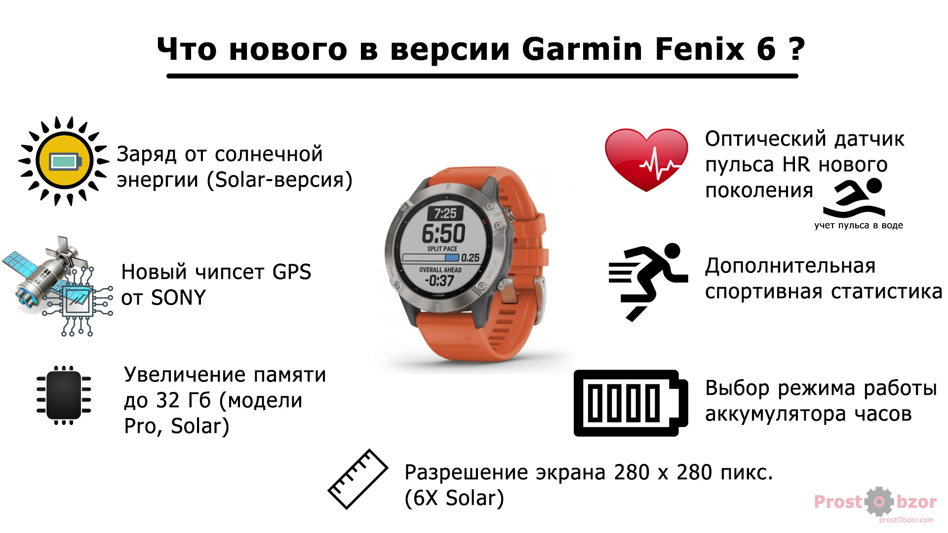 Какие изюминки предлагает версия часов Garmin Fenix 6 (по-крупному):