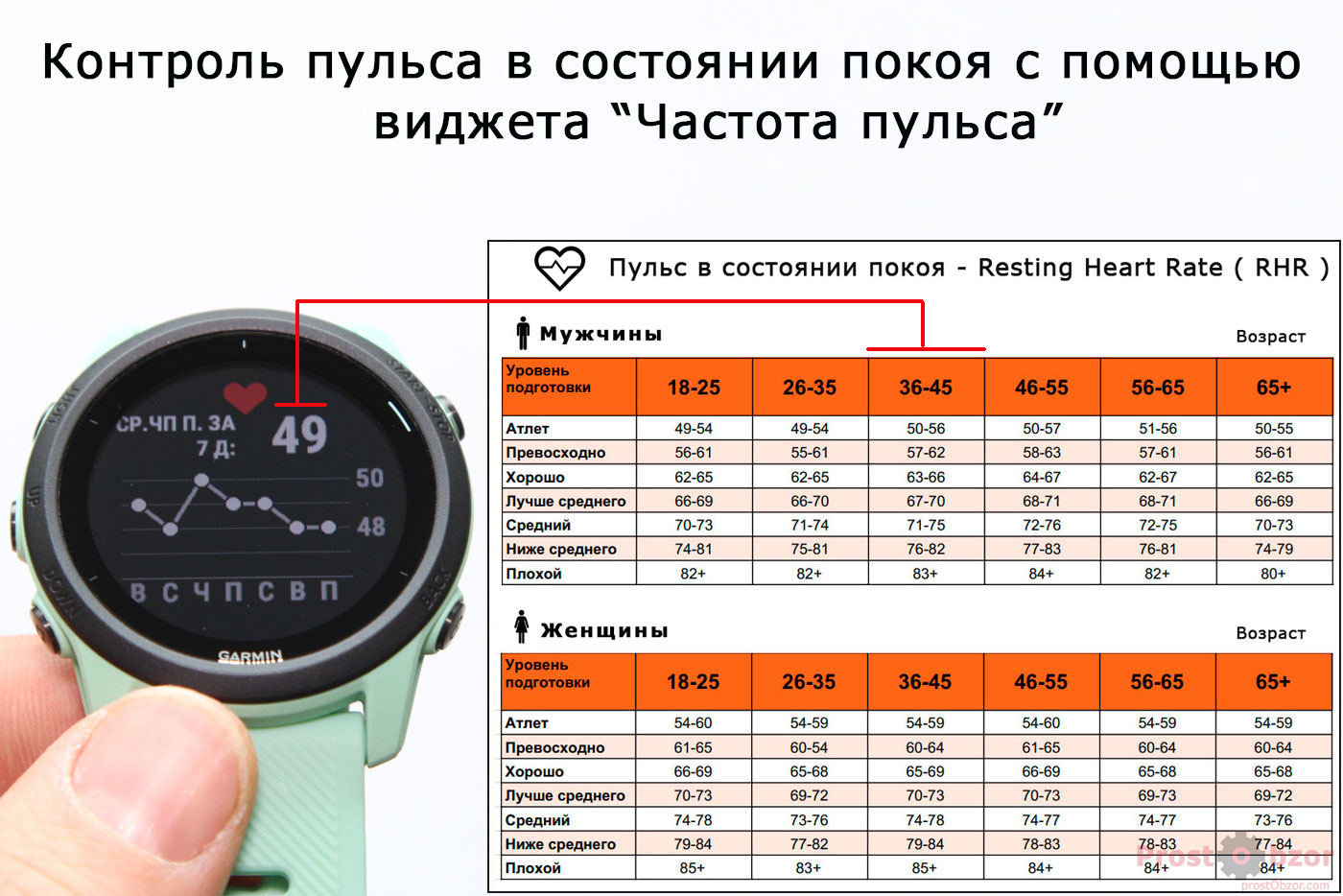 Учет пульса в состоянии покоя (позволяет определить ваш уровень подготовки).