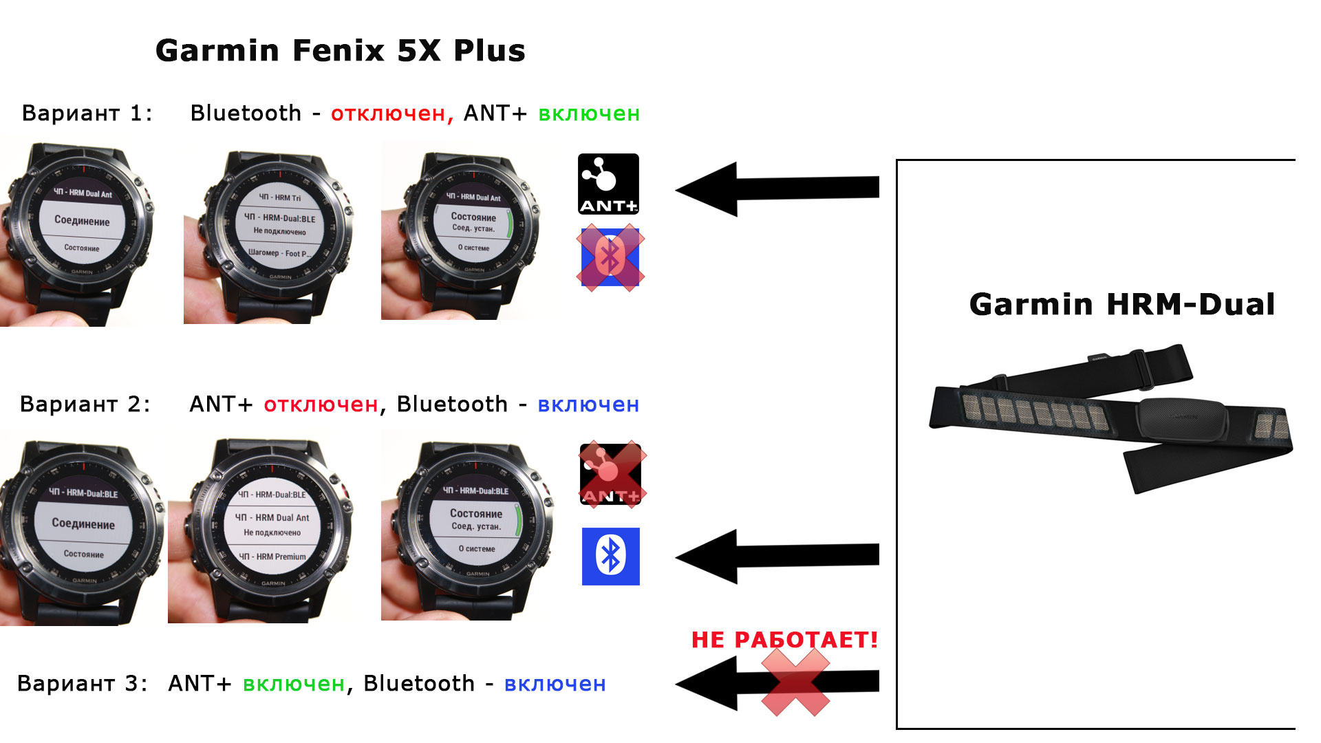То есть если вы подключите ремень Garmin HRM-Dual по Bluetooth, при этом подключение по ANT+ для этого же ремня в часах автоматически отключится.