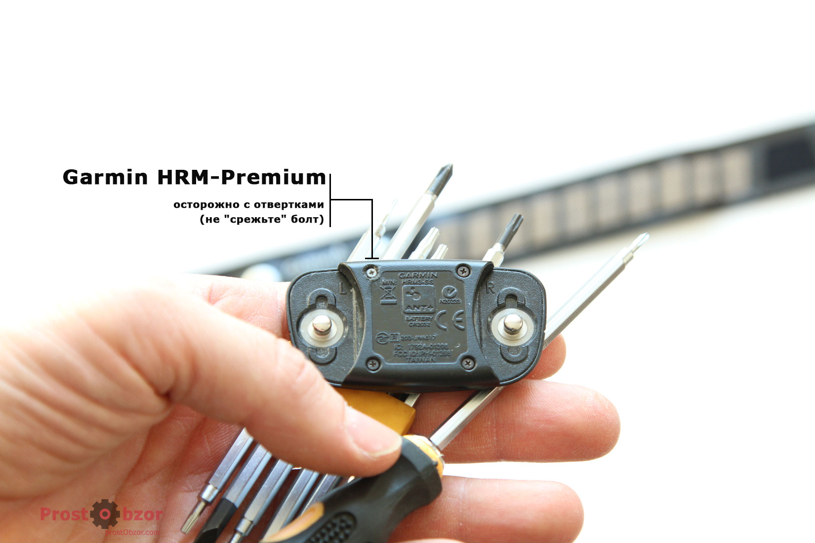 При работе со старым пульсометром Garmin HRM-Premium я изначально выбрал не ту отвёртку и быстро срезал пазы шапки болта. Материал фиксирующих болтов в старой модели HRM-Premium был мягкий.