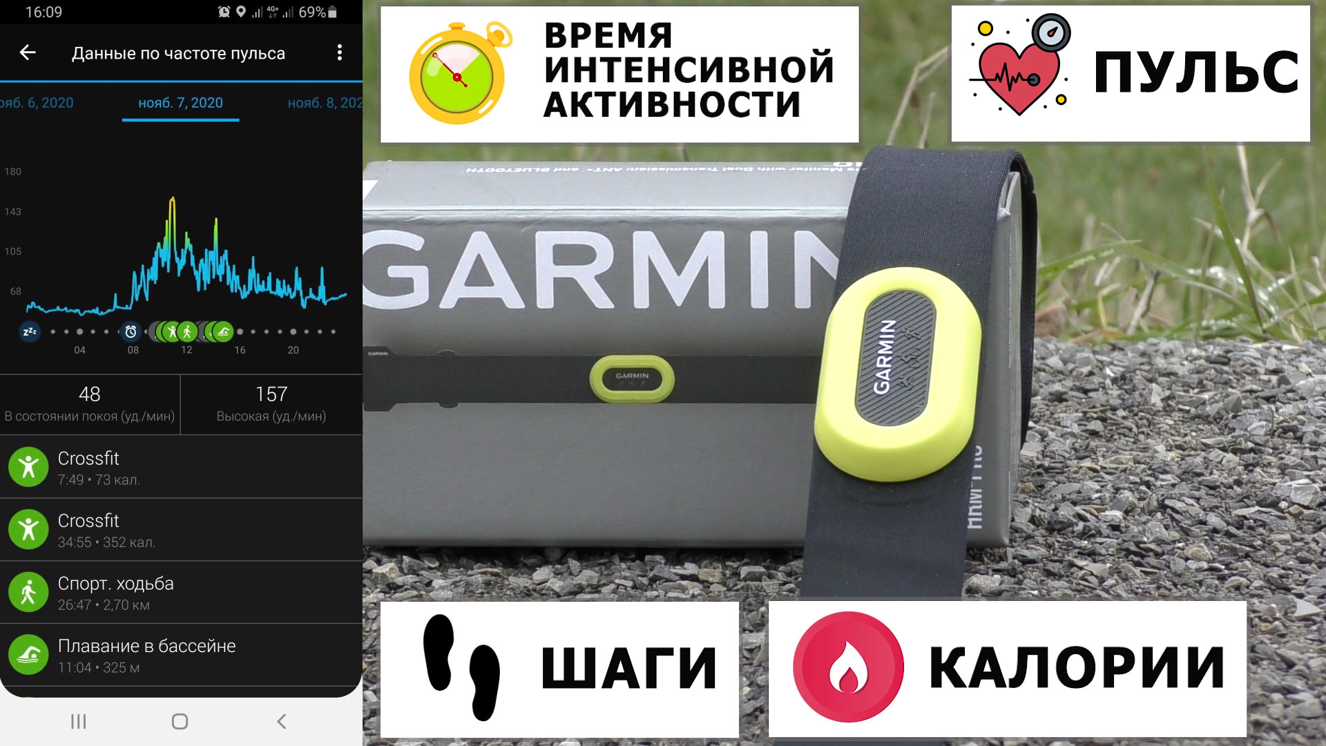 5. Запись пульса, шагов, калорий, время интенсивной активности автономно без часов.