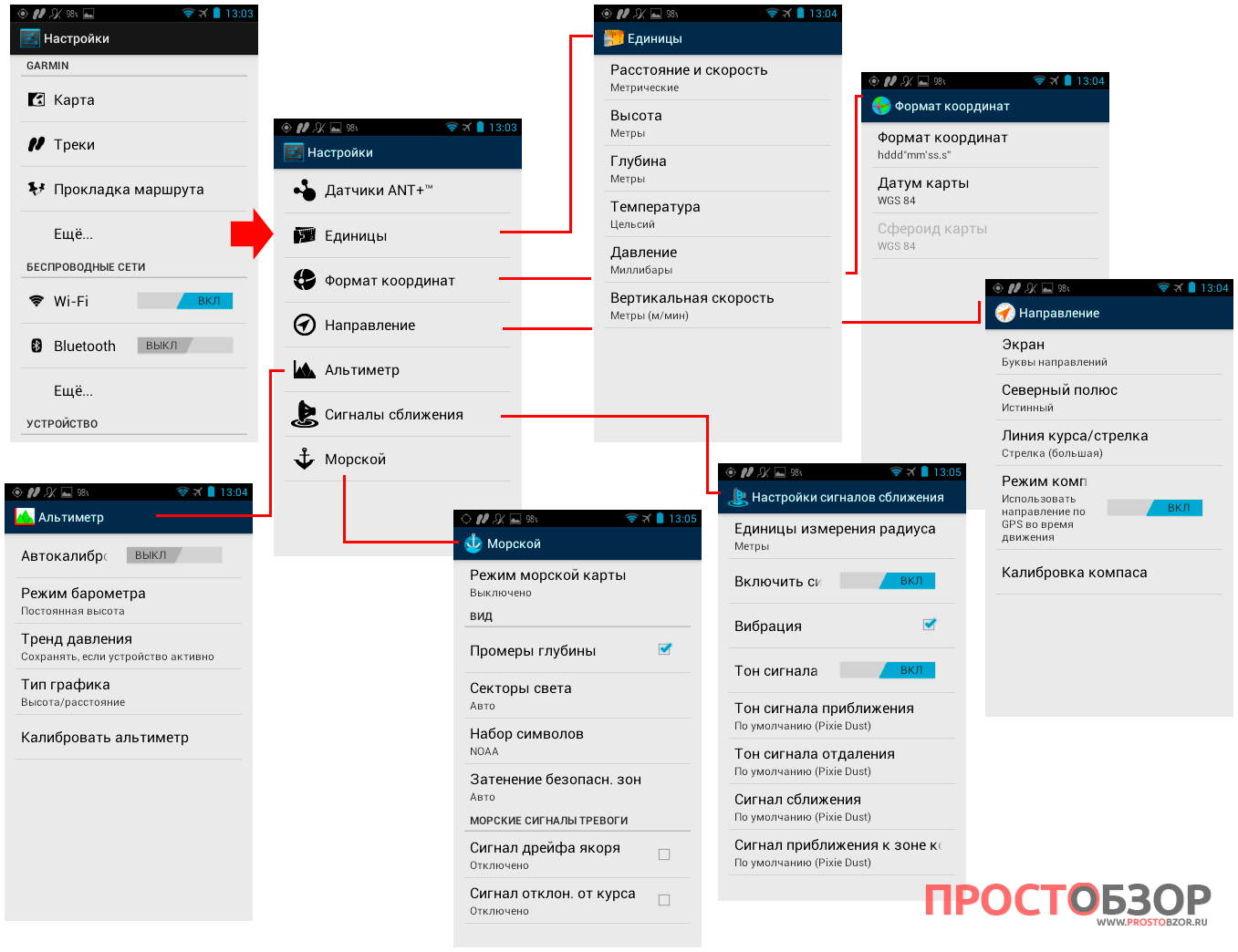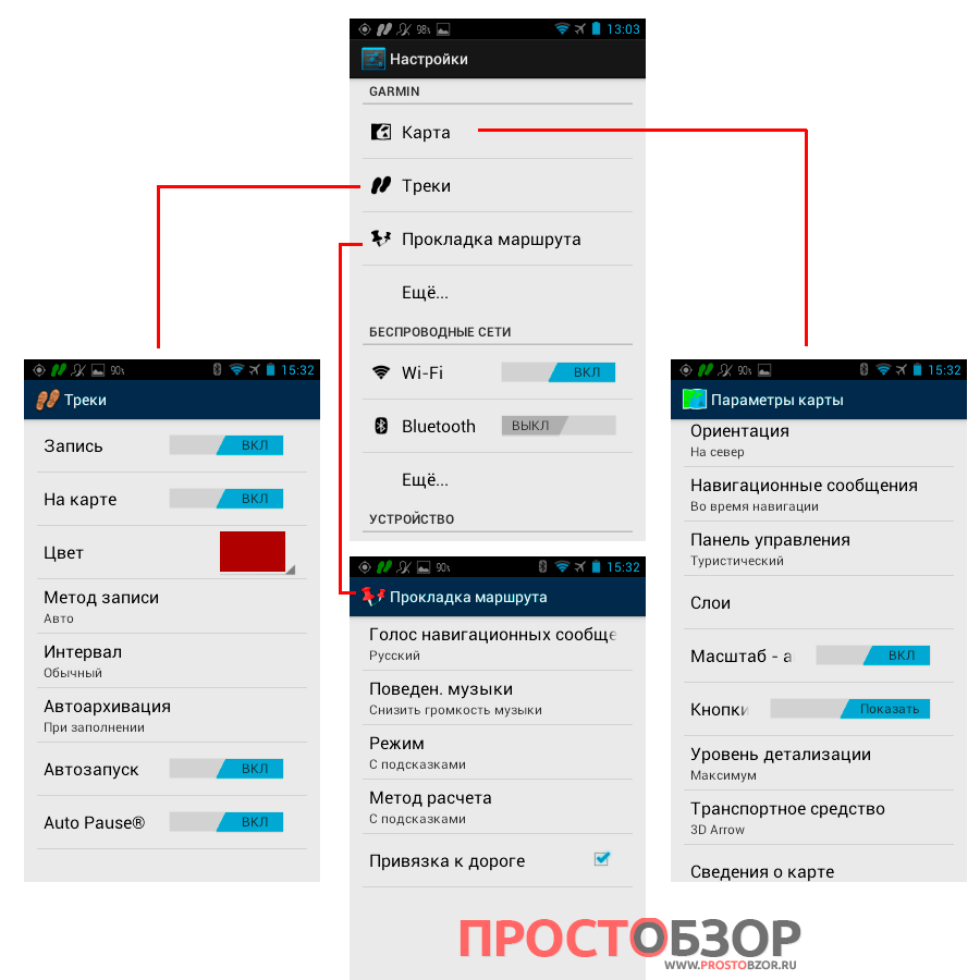Для каждого элемента управления навигации Garmin отвел отдельный раздел в Настройках.
