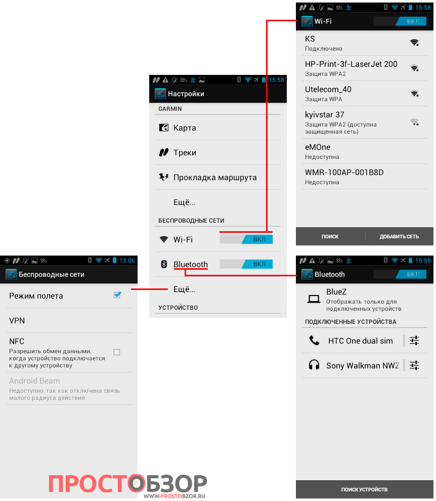 Следующий важный для функционирования навигатора пункт меню — Беспроводные сети.