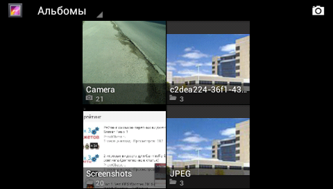 «Галлерея» — используется для показа всех фото материалов, расположенных в Монтерре. Разбивает альбомы по типах: фото с камеры, скриншоты, фото различных форматов.