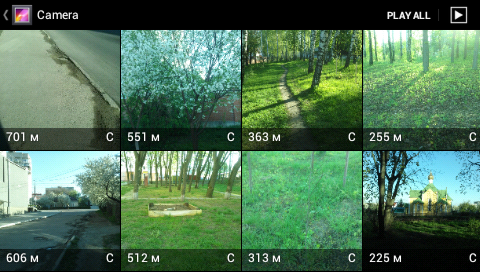 В каждом разделе фото идут плиткой, чтобы вы могли быстро просмотреть и найти нужную фотку. При этом, внизу фото указывается расстояние от текущей координаты. Так вы можете легко ориентироваться, сколько вам еще нужно идти до сфотографированного объекта.