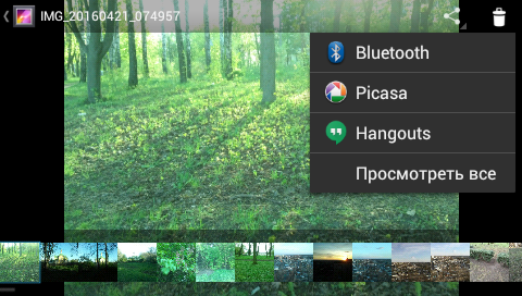 Вы можете удалить фото или отправить его на выбранные устройства или программы (вызов идет иконку «Поделиться» слева от Мусорной корзины):