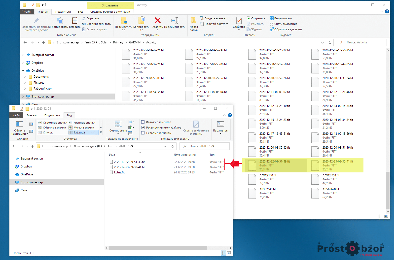 Для переноса ваших записанных активностей — выберите файлы с расширением .fit из папки «Этот компьютер\fenix 6X Pro Solar\Primary\GARMIN\Activity», где Fenix 6X Pro Solar — это название вашего прибора.