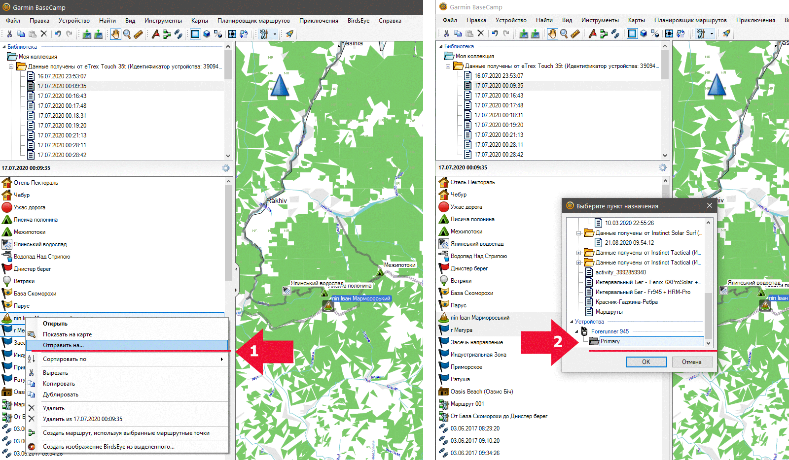 Бывает ситуация, что у вас нет программы BaseCamp. Как же перенести точки и треки в устройства?