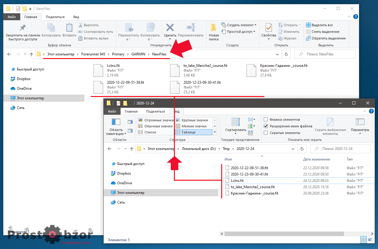 В часах приемнике скопируйте в папку «Этот компьютер\Forerunner 945\Primary\GARMIN\NewFiles» все сохраненные точки (файл Lctns.fit), дистанции (может несколько) и по желанию файлы активностей (может быть несколько файлов в формате дата время.fit).