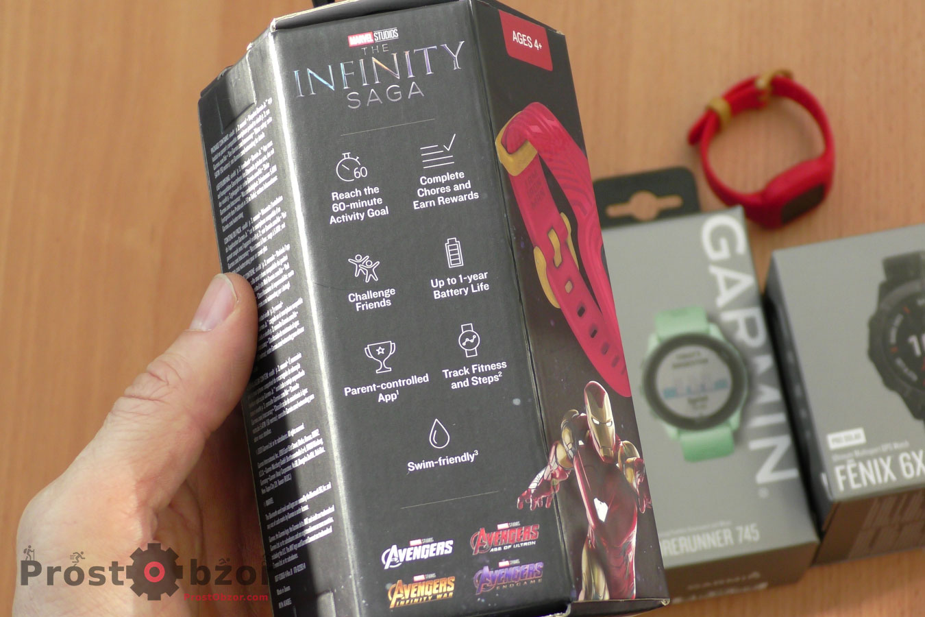 Трекер серии Marvel поставляется в оригинальной красочной коробке, которая разительно отличается от дизайна часов Garmin.