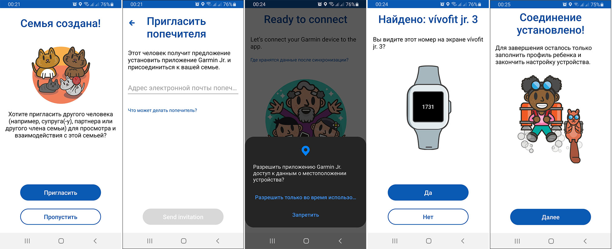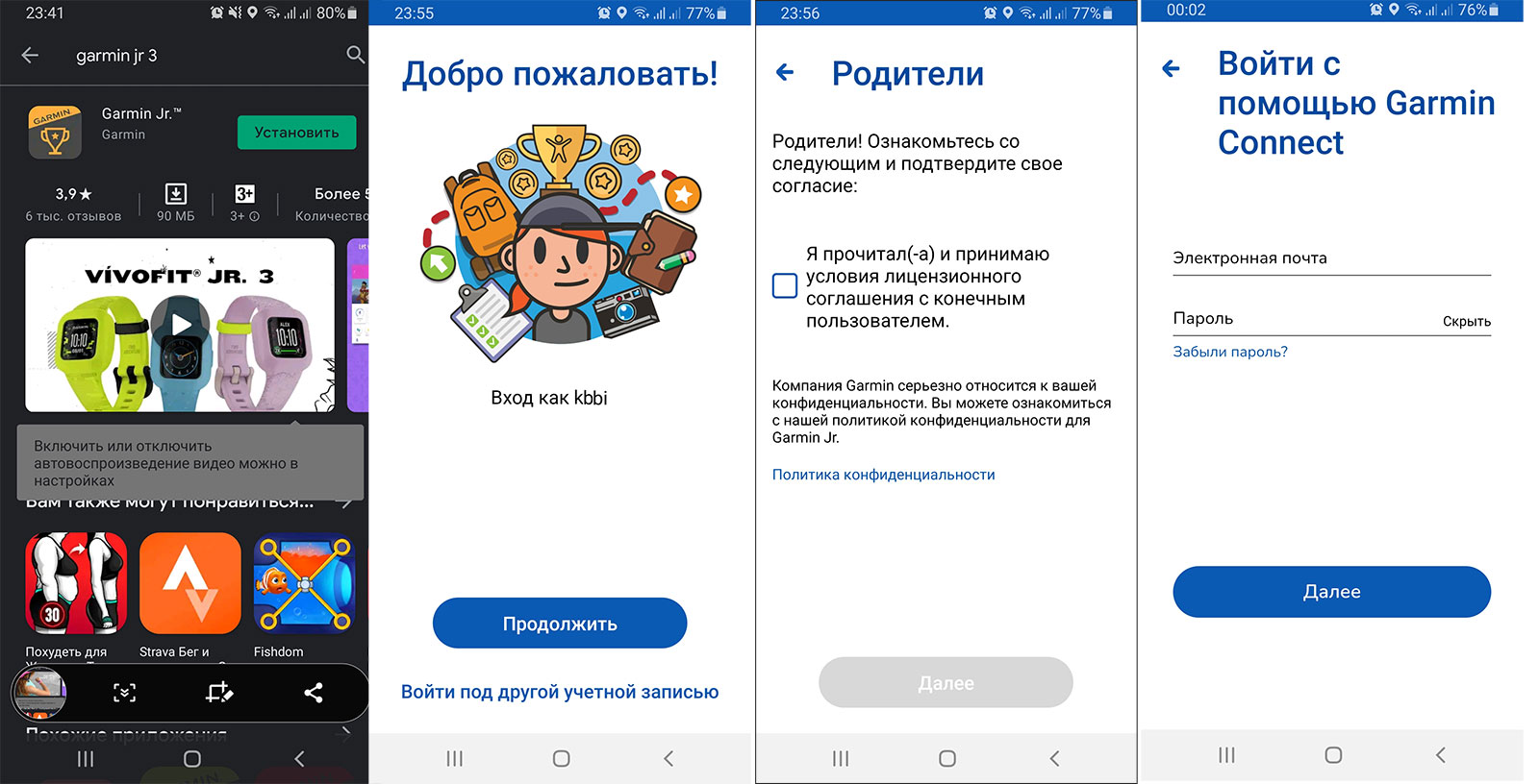 2. Уж «очень хитрая» система первой регистрации приложения с викториной для взрослых. Можно было бы упростить регистрацию — просто разрешить регистрацию с учетной записью родителя в Garmin Connect.
