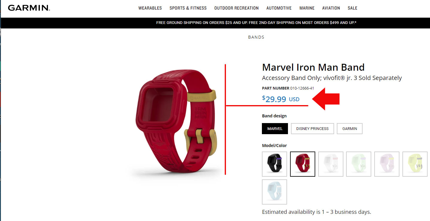 Трекер стоит 80 долларов. Цена часов не зависит от цвета и выбора серии партнера Garmin — будь это Disney или Marvel.