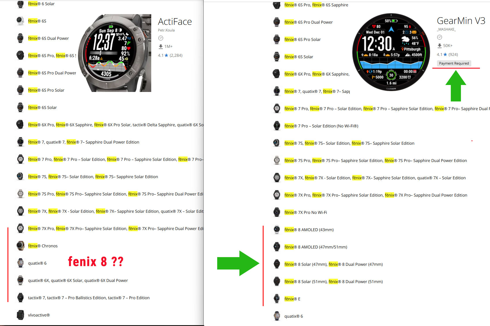 С момента выпуска часов, прошло уже 2,5 месяца, а бесплатный популярный циферблат ActiFace не поддерживает новые модели fenix 8. Приходится ждать обновлений разработчика.
