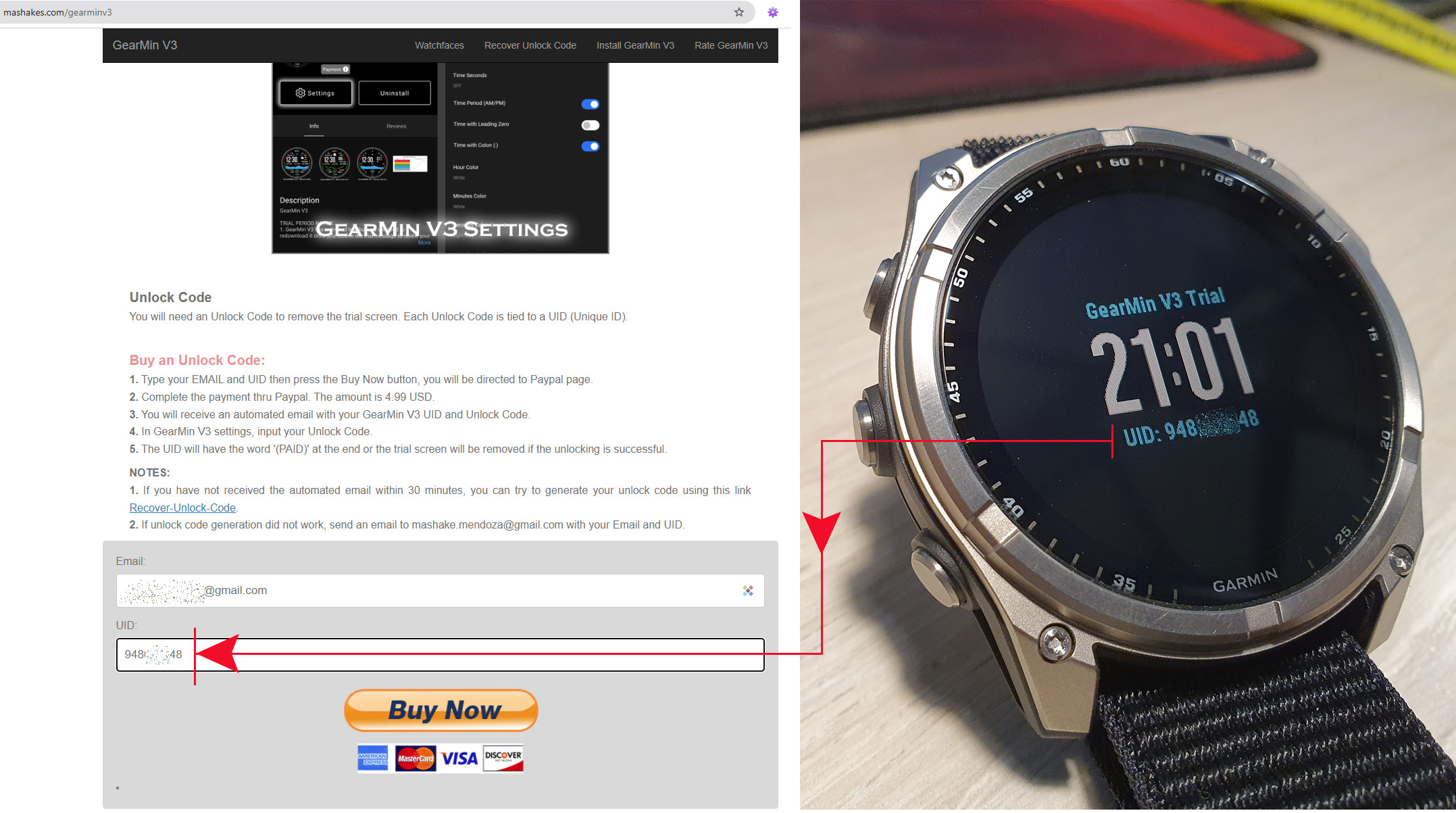 После оплаты на ваш емейл придет подтверждение про регистрацию циферблата.