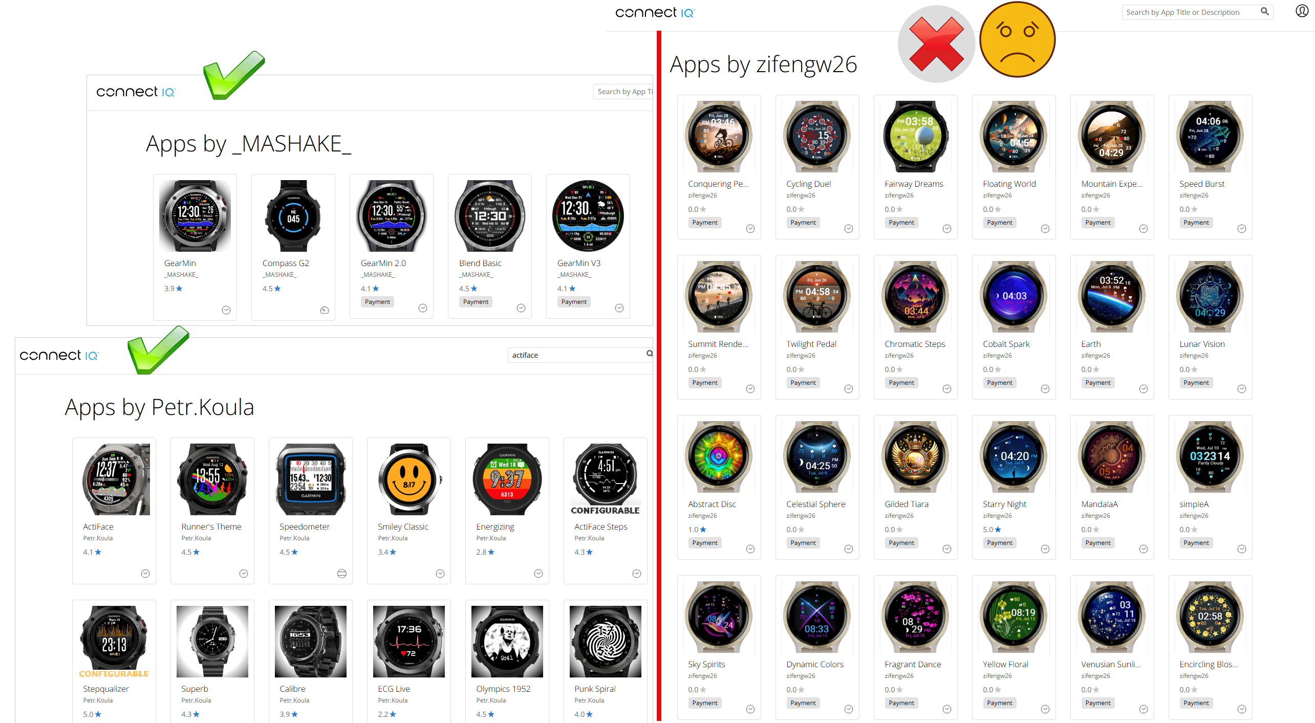 Сравните сами — авторы ActiFace, GearMin против штамповщика платных циферблатов.