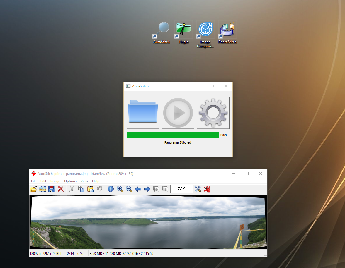 Результатом работы программы будет собранная панорама из тех файлов, что вы добавили.