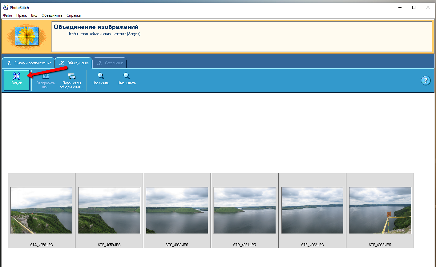 Шаг 3 — запускаем объединение фото в один большой кадр панорамы.