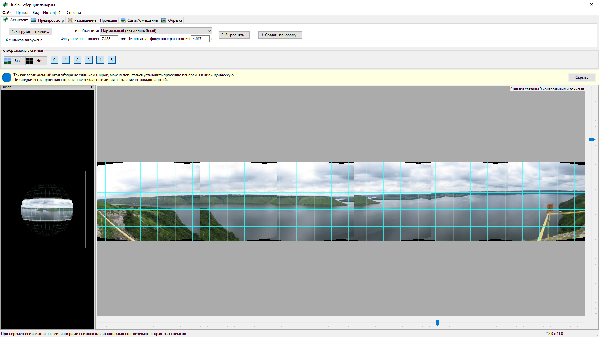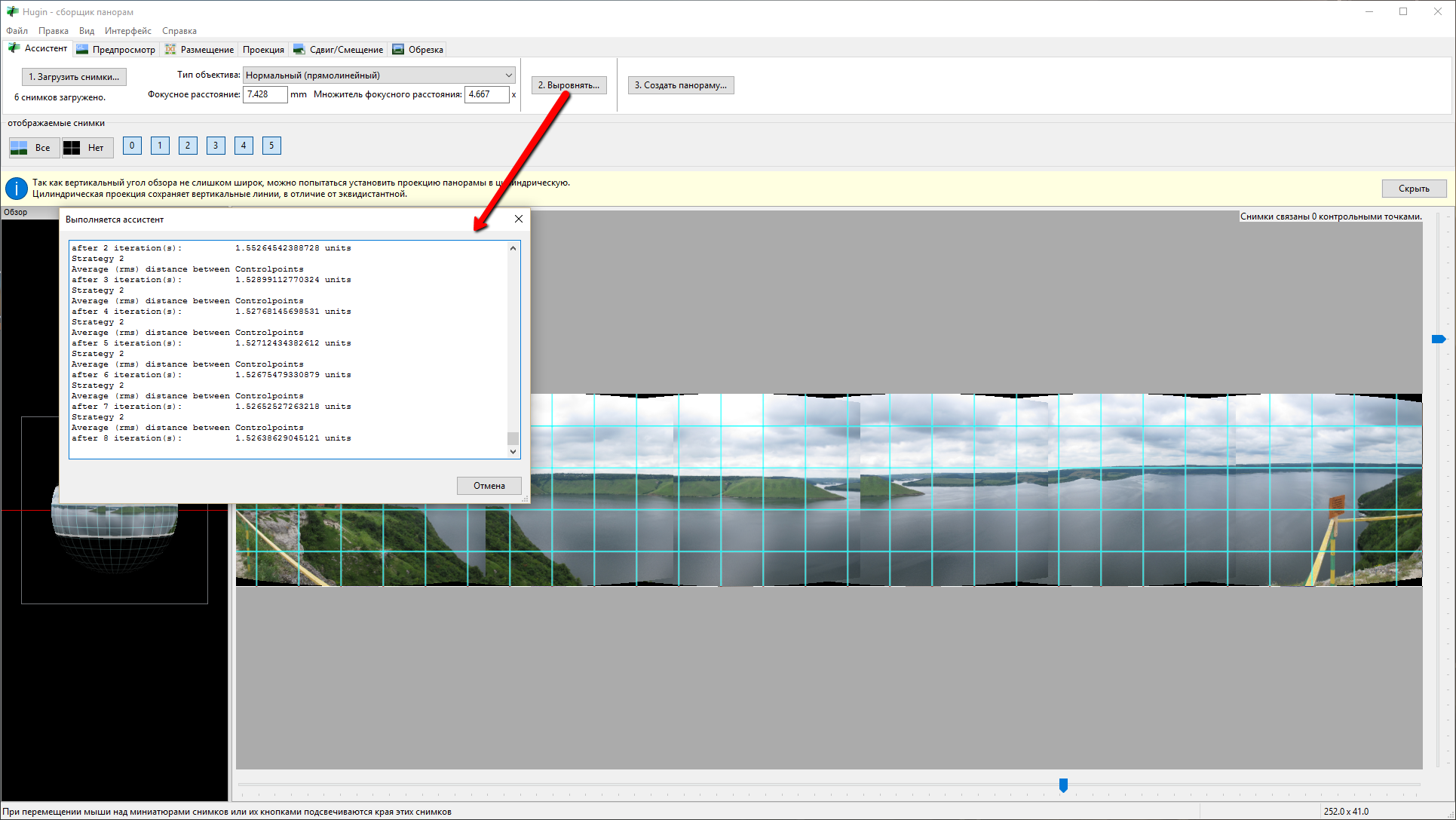 Шаг 4 — Выбираем тип объектива и смотрим выравниваемые снимки.