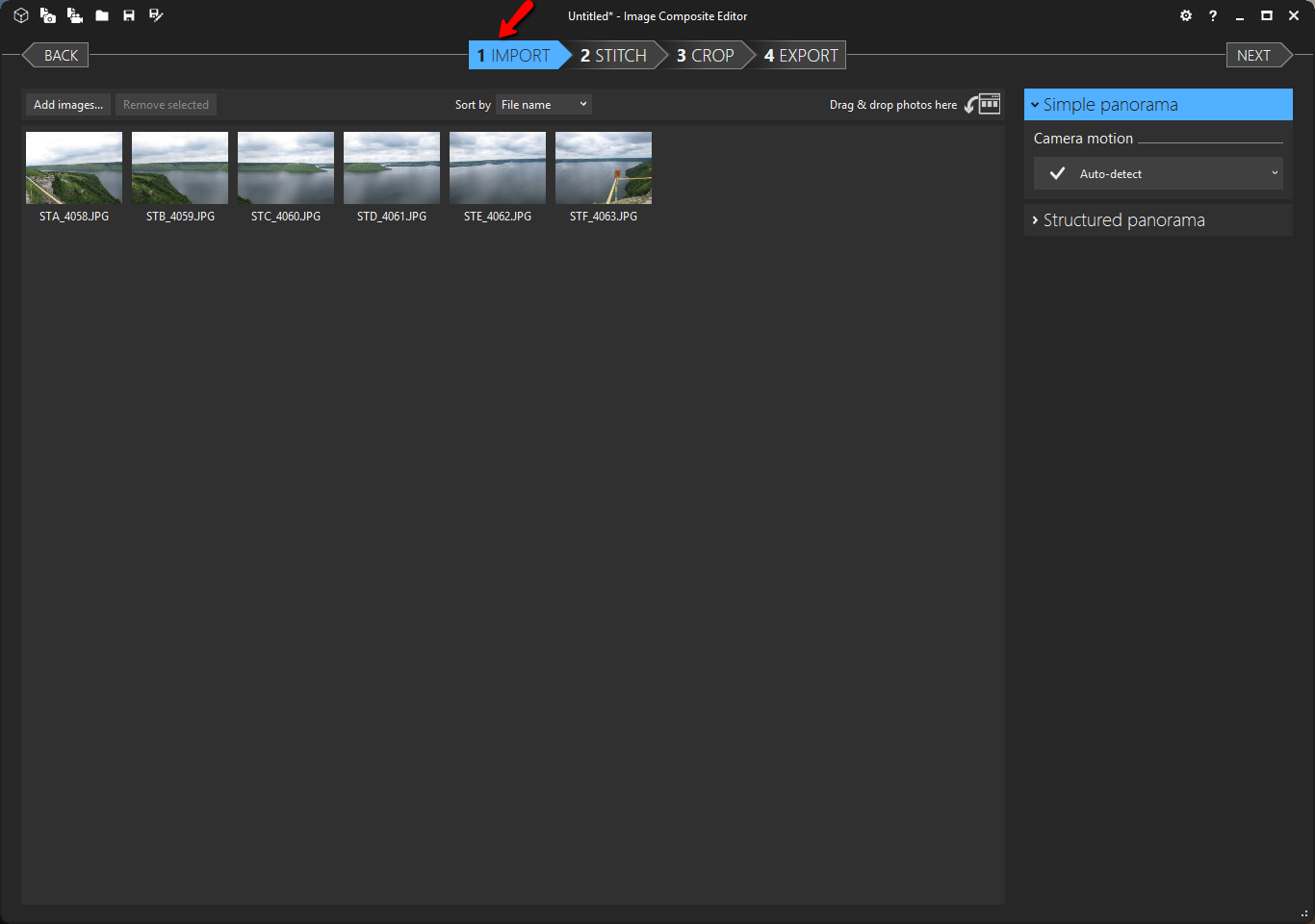 Вы прошли шаг 1 -сделали импорт фото для панорамы.