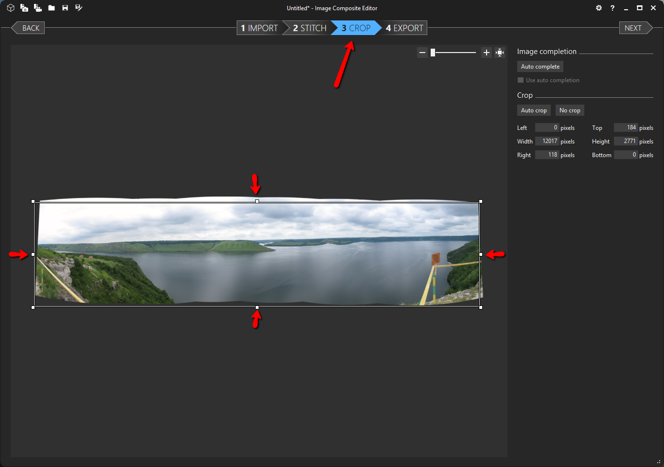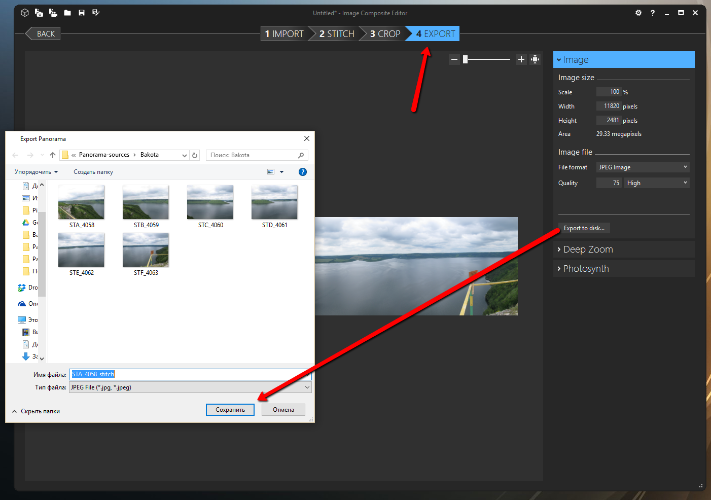 Шаг 5 — обрезаете края панорамы и сохраняете в файл.