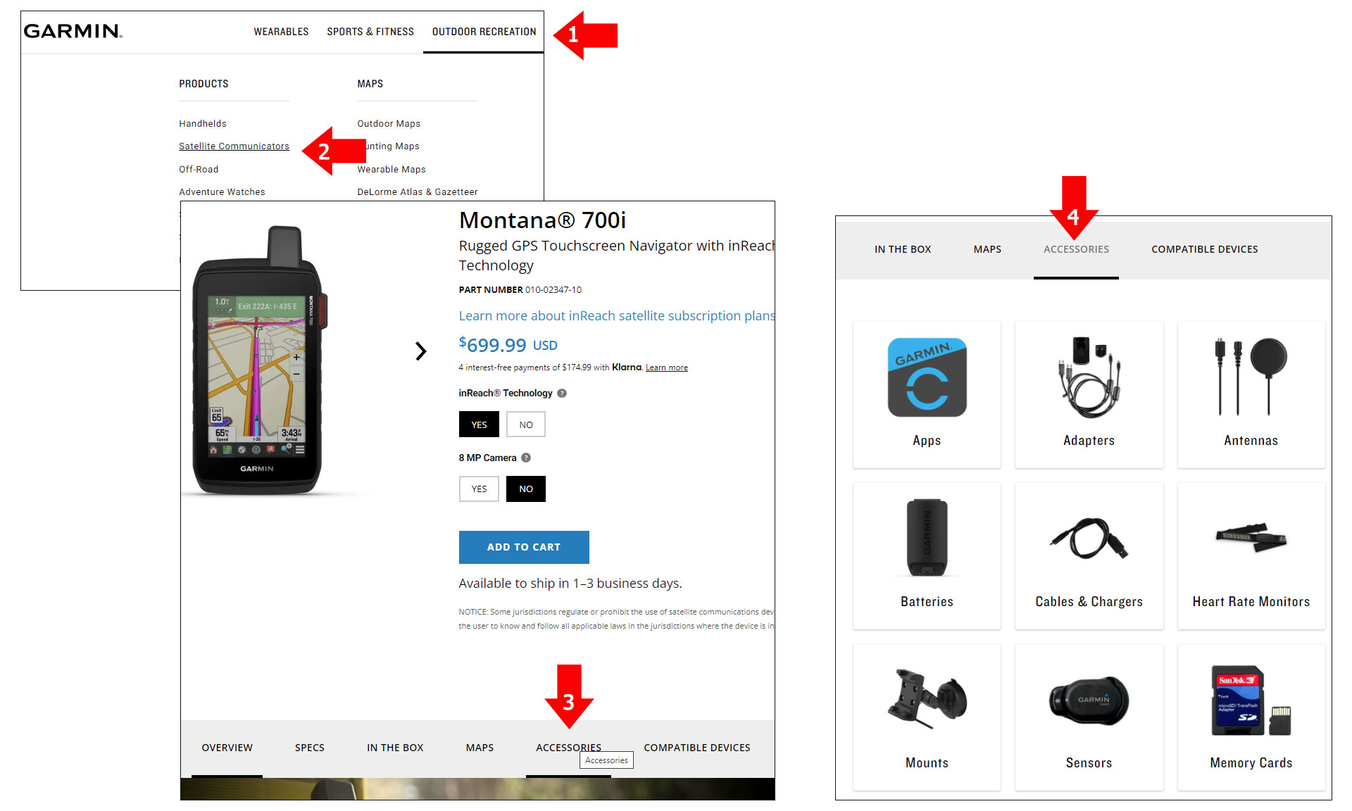 Відповідь: На офіційному сайті Garmin – www.garmin.com – виберіть розділ “Outdoor Recreation” –> “Satellite Communicators” (для приладів з підтримкою InReach) або меню “Handhelds” (прилади без inReach). Або просто введіть в пошуку на сайті назву потрібного навігатора.