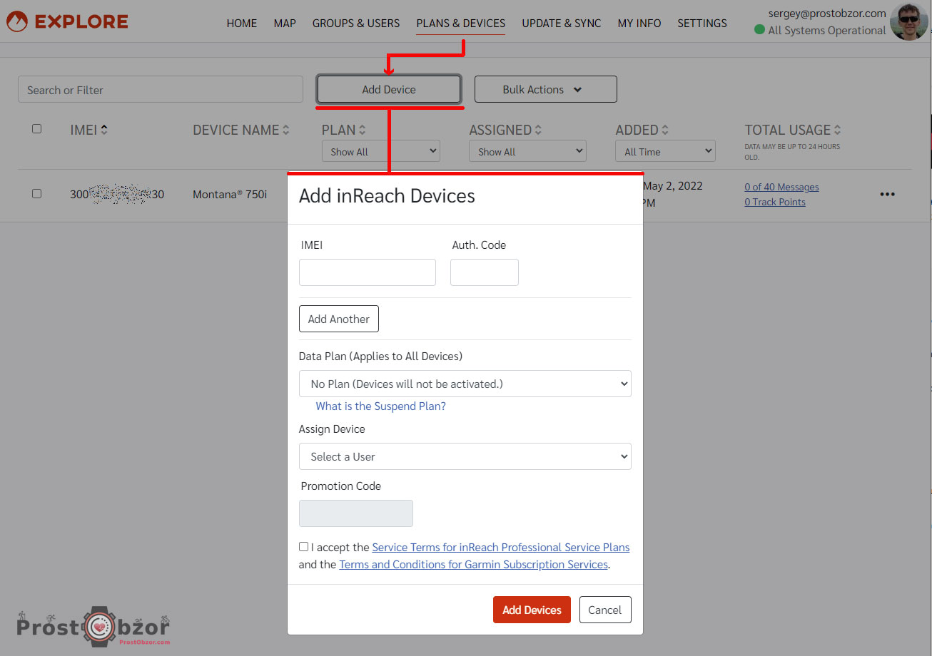 На цій схемі я показав, як потрібно активувати GPS-навігатор Garmin Montana 750i. Для супутникового комунікатора inReach Mini/Mini 2 послідовність дій аналогічна – див. інструкцію на сайті Garmin.