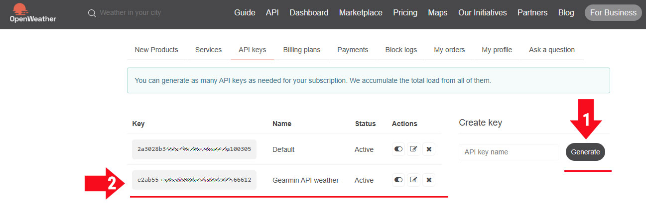 В открывшемся окне вам нужно сгенерировать новый ключ для вашего циферблата. При условии, конечно, что циферблат поддерживает работу с OpenWeather.