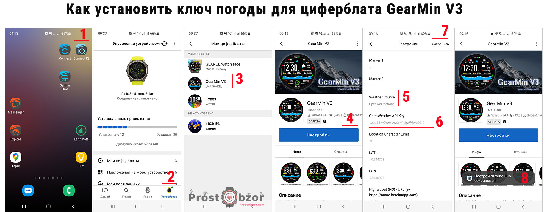 3.4 Зайдите в настройки циферблата и установите сгенерированный ключ погоды.